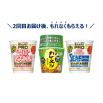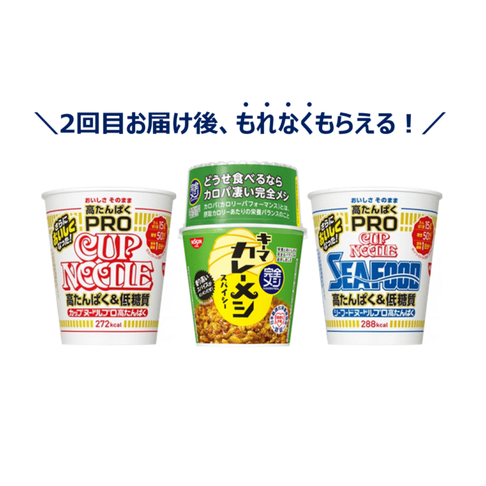 定期コースをお申し込みのお客さまには、もれなく「トリプルバリア専用シェーカー」を初回のお届け時にプレゼントいたします。また、3回のお届けごとに日清食品ならではの特典をプレゼントいたします。