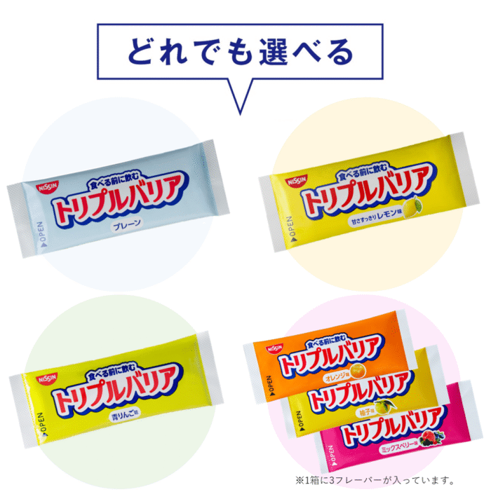 「青りんご味」「甘さすっきりレモン味」「プレーン」「果物フレーバー3種アソート」からお好きな味をお選びいただけます。専用の配送箱でお届けします。